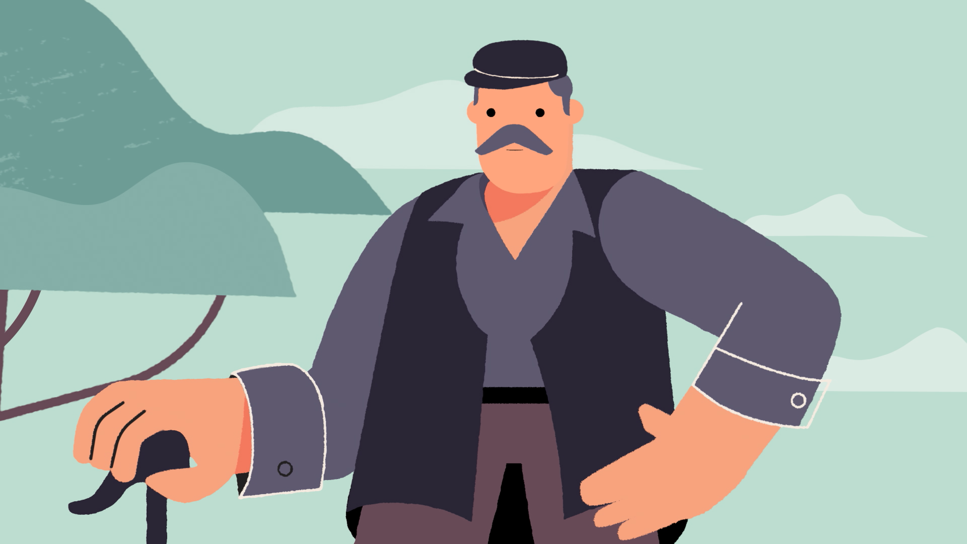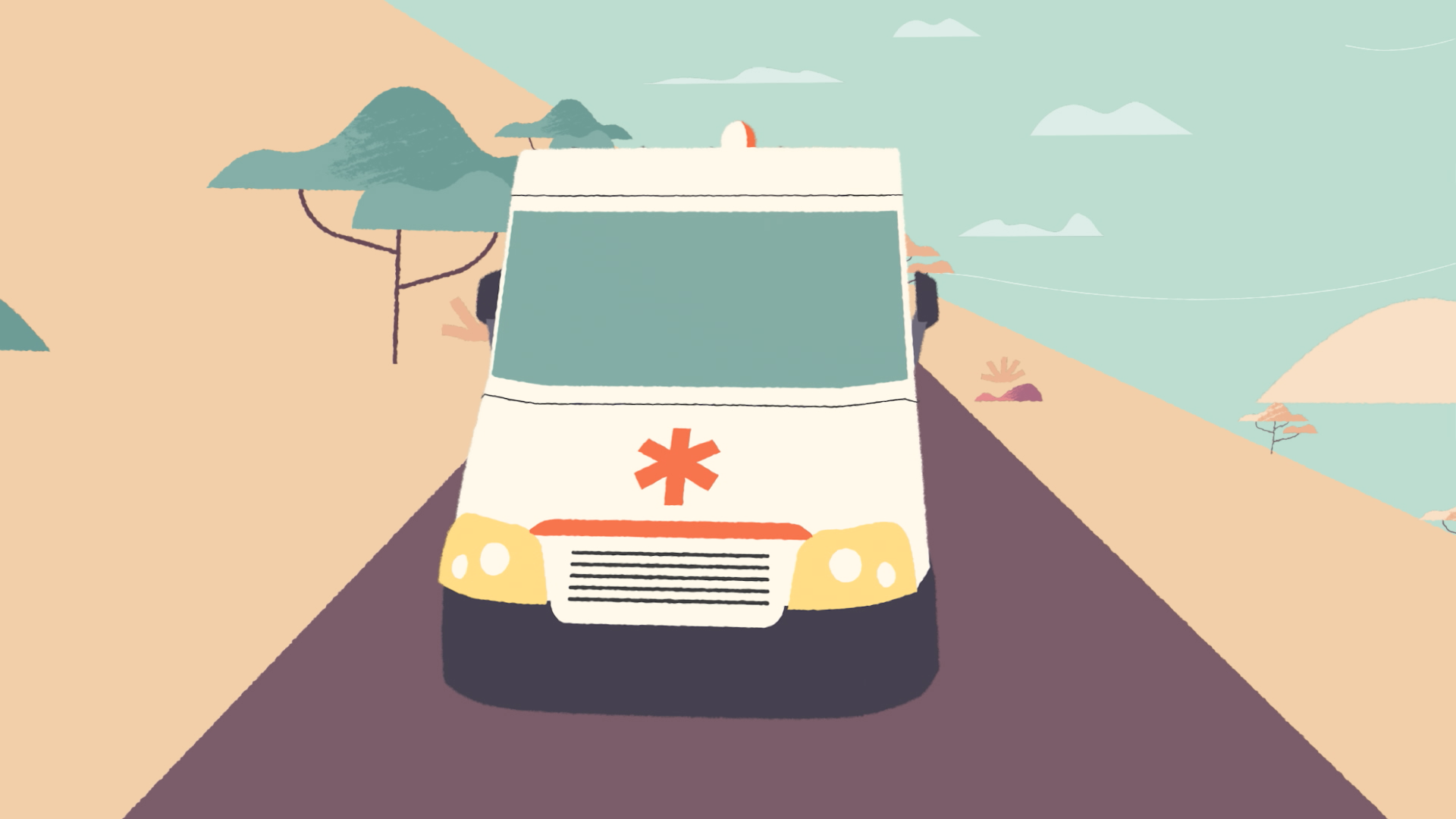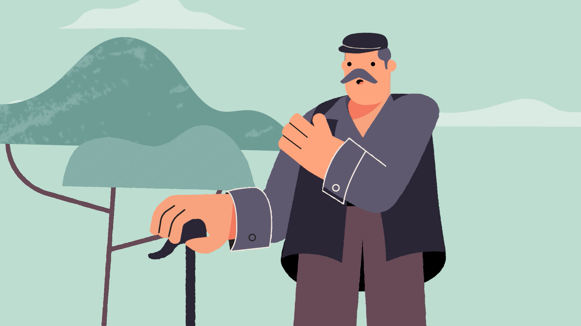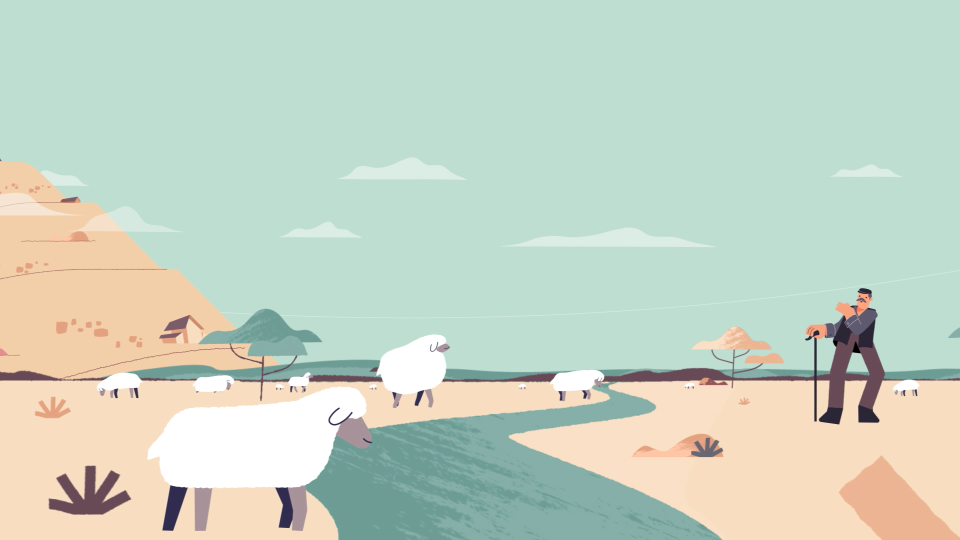 With this cheesy stereotype in mind we’ve created the exuberant character of a shepherd. We capture the moment where the he sweet-talks a sheep on the riverbank and encourages it to jump to the other side. How does the shepherd achieve this? He yells HOPA! After which the sheep, in a single, elegant movement jumps across the flowing river. Having registered the meaning and connotation of the word ΧΟΠA/FAST, Χέρια/Hands, Ομιλία/Speech, Πρόσωπο/Face, Ασθενοφόρο/Ambulance the protagonist illustrates the above stroke symptoms.